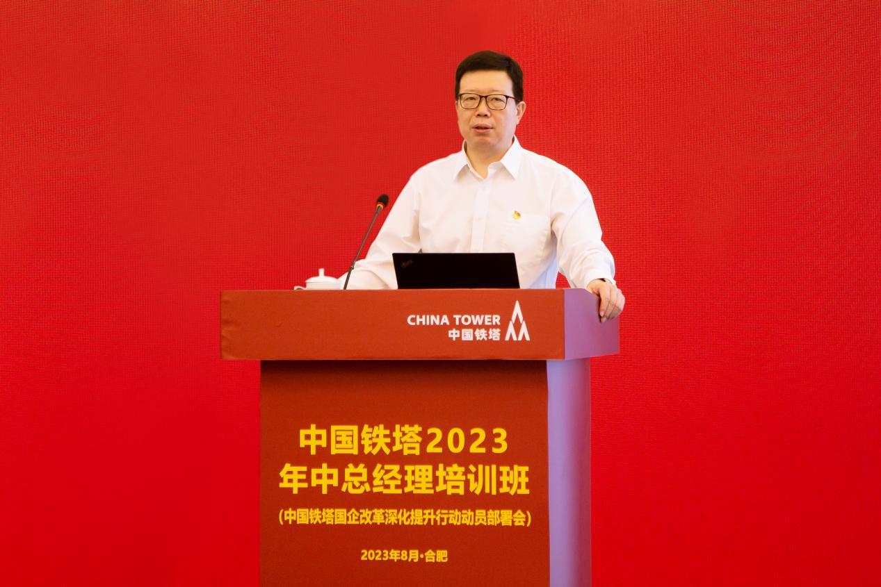 8月14-16日,中国铁塔举办了2023年中总经理培训班暨国企改革深化提升行动动员部署会,深入学习贯彻党的二十大精神和习近平总书记重要指示批示精神,贯彻落实国资委中央企业改革深化提升行动研讨班精神,总结上半年工作,分析当前形势任务,研究部署下半年重点工作,推动学习贯彻习近平新时代中国特色社会主义思想主题教育走深走实。中国铁塔党委书记、董事长张志勇以《深化改革 提高核心竞争力增强核心功能 持续推动高质量发展》为题讲党课并讲话,党委副书记、总经理顾晓敏作年中工作报告,党委副书记高春雷作总结讲话。公司领导班子成员出席了会议,外部董事受邀参加会议。中国信息通信研究院副院长魏亮等作了专题辅导培训。