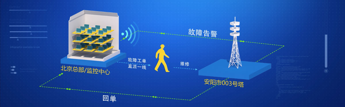 中国铁塔建立全方位的电力保障服务,在提供电力引入的基础上,通过蓄电池备电、油机发电等方式,在外市电停电的情况下为客户提供后备电力续航服务,保障客户设备持续稳定运行。目前中国铁塔具备动力配套设施的站址已全部安装动环监控,第一时间采集停电信息上传运维监控平台,运维监控平台根据机房(机柜)内蓄电池续航时长,动态派发发电工单。遍布全国各个区县、乡镇的维护人员,第一时间响应发电需求,确保机房7*24小时不间断供电。