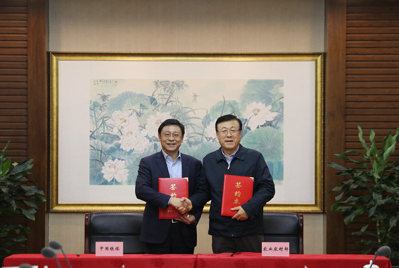 1月19日,农业农村部与中国铁塔股份有限公司(简称“中国铁塔”)签署战略合作协议,重点在长江禁捕水域执法监管、渔政监管、乡村治理、农田农机监测、农业新基建、农村人居环境改善、农村金融保险信息化等七个方面开展合作。中央农办主任、农业农村部部长、党组书记唐仁健,中国铁塔董事长、党委书记佟吉禄出席了签约仪式。农业农村部副部长、党组成员于康震与中国铁塔总经理、党委副书记顾晓敏代表双方签署了合作协议。