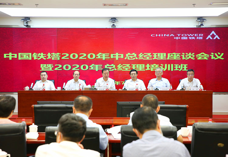 7月27-29日,中国铁塔召开2020年中总经理座谈会暨总经理培训班,深入学习习近平总书记系列重要讲话精神,贯彻落实上级部委相关会议精神,回顾公司6年来走过的道路,总结上半年工作,分析研判当前形势,安排部署下半年工作。中国铁塔党委书记、董事长佟吉禄围绕更加强化市场导向和客户导向、推动高质量发展作了讲话,党委副书记、总经理顾晓敏代表管理层作了工作报告,公司领导班子成员出席会议。