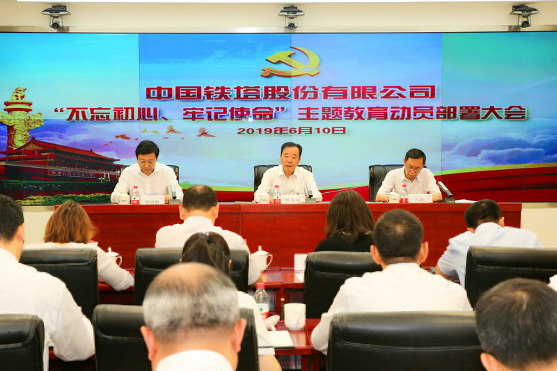 6月10日上午,中国铁塔股份有限公司召开“不忘初心、牢记使命”主题教育动员部署会,深入学习贯彻习近平总书记在“不忘初心、牢记使命”主题教育工作会议上的重要讲话精神,贯彻国资委党委管理领导班子的中央企业“不忘初心、牢记使命”主题教育工作会议精神,树牢“四个意识”、坚定“四个自信”、做到“两个维护”,增强搞好主题教育的责任感和使命感,结合中国铁塔实际“守初心、担使命、找差距、抓落实”,坚定不移推进铁塔改革,释放共享红利,真正肩负起党中央、国务院赋予中国铁塔的职责使命。
