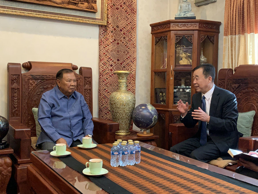 老挝人民革命党中央委员会总书记、国家主席本扬18日会见中国铁塔董事长、总经理佟吉禄