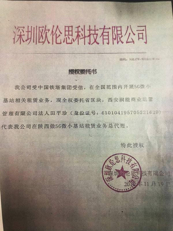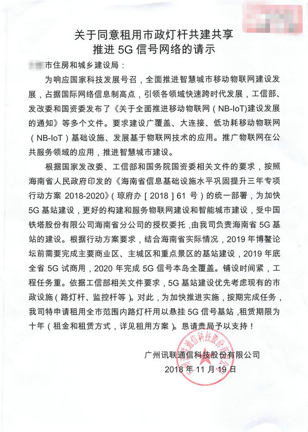 一、我公司从未授权该等第三方就5G通信建设开展任何商业活动,未授权签署市政公共设施或业主共用设施租赁协议,亦未与该等第三方就5G通信建设签署业务协议。